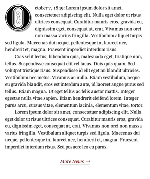 <span class="drop">O</span>ctober 7, 1849:</span> Lorem ipsum...</p>