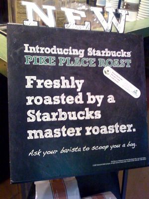 I'm not sure how long this has been part of Starbucks's visual identity, but it's fitting that they should try to co-opt the look of a local coffee shop, completely miss the point, and subsequently reinforce their own corporate homogeny. They may sometimes hire baristas with a creative, independent spirit, but they certainly won't let them anywhere near a chalkboard. Or, for that matter, let an actual chalkboard anywhere near one of their shops. Better… See more →