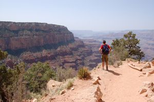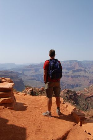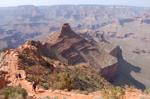 Wayne and I hiked the South Kaibab Trail down to Cedar Ridge for a manageable round trip of about three miles and a descent of 1,140 feet below the canyon’s south rim. Less than a quarter of the distance to the bottom, our little hike barely registered a blip on the canyon’s massive radar. It was a great way to feel insignificant in the best way possible, to better recognize how tenuous our hold on life really is, and to keep the sunscreen people in business. Next time, I’ll be camping by the Colorado River at the bottom.