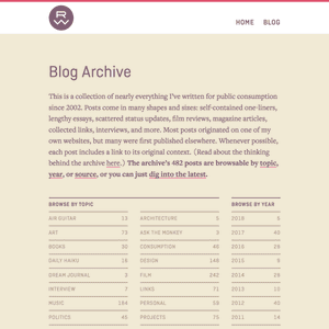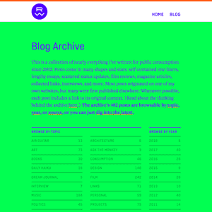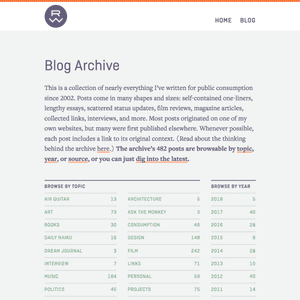This is the final post in a series about my site’s 2017 redesign. If you haven’t already, check out the other posts in the series, which discuss the design’s archival philosophy and approach to typography and layout.
