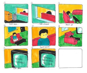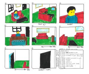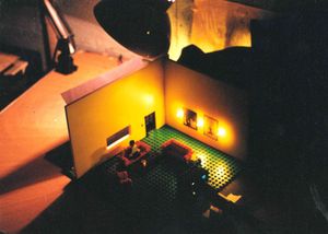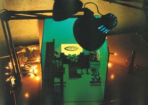 Due to various external constraints, each of my previous films had to be shot in a single session, with limited time allowed between frames taken. This led to at least one occasion where hours of work had to be redone when I made a mistake. With seven sets and a five-and-a-half-minute running time (about 4,000 frames), Twelve Bucks was impossible to shoot in that fashion. Thankfully, this time I had the luxury of spreading the shoot out over several weeks, and a telecommunications major was available to help me edit together the final footage.