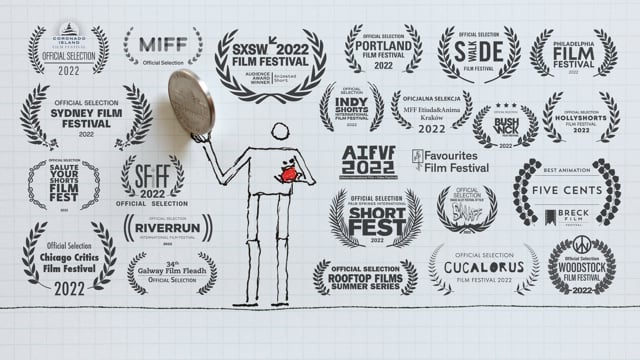 After ending his own life, a man attempts to reunite with his deceased wife in the afterlife, but when he finally does, she doesn’t want to see him. It’s an interesting idea worth exploring, but this film seems mainly like an excuse to instead visit a quirky vision of heaven framed as a kind of surrealist vacation resort. If I hadn’t been so dissatisfied by the way its postmortem divorce felt like an afterthought, the main takeaway would have been that its colorful style and odd proportions bring Seymour Chwast to mind, and its creatures and scenarios are imaginative and fun.