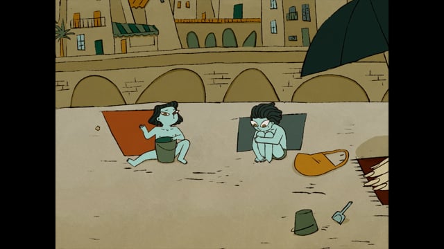 Absolutely gorgeous rendering of a trans woman’s path to self-discovery, beginning with her childhood obsession with The Little Mermaid and retaining that fishy metaphor throughout. The style looks so familiar, but I don’t believe I’ve seen any of Cynthia Calvi’s other films, so I think it’s reminding me of Kate Beaton’s comics, which is another plus.
