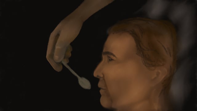 Some fairly straightforward text on the virtues of keeping a journal, accompanied by a few animated slice-of-life moments. There are some kind of cool experiments in rotoscoping here, but not enough to fill the two-minute runtime, so those moments are all inexplicably repeated, and I didn’t find the thoughts about journaling interesting or insightful. It’s more of a very rough sketch than anything like a finished work.