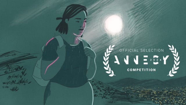 Gorgeously animated sweeping lines and color give shape to a gay woman’s stressful emigration from the repressive Congo to the United States. Its final note is a bit conflicted, as the narrator/protagonist is hopeful and without regret, but the closing text emphasizes the border patrol’s tendency to strip émigrés of their belongings.